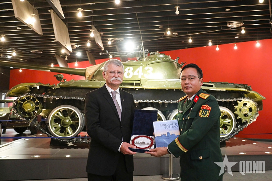 Trong khuôn khổ chuyến thăm chính thức Việt Nam, sáng 20-10, đoàn đại biểu Hungary do Chủ tịch Quốc hội Kover Laszlo dẫn đầu đã tham quan Bảo tàng Lịch sử quân sự Việt Nam.
