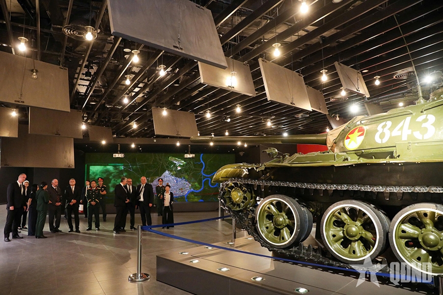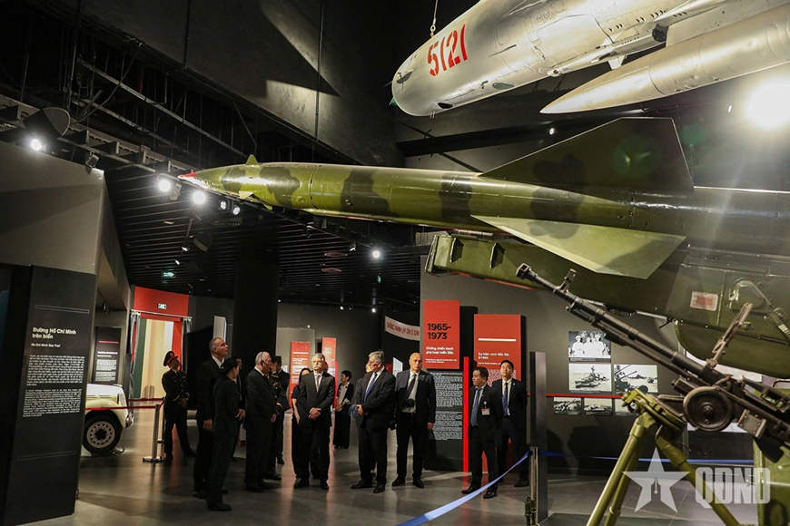 Tại đây, đoàn đã tham quan hệ thống trưng bày các hiện vật và nghe thuyết minh về các giai đoạn lịch sử trong các cuộc kháng chiến giành độc lập dân tộc, bảo vệ và xây dựng Tổ quốc của nhân dân Việt Nam, cũng như sự hỗ trợ to lớn của bạn bè quốc tế trong các thời kỳ lịch sử.