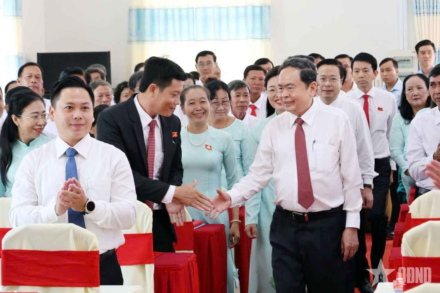 | Chủ tịch Quốc hội Trần Thanh Mẫn và các đại biểu dự Đại hội Đảng bộ xã Thạnh Xuân, thành phố Cần Thơ. Ảnh: NGUYỄN HÀNH |