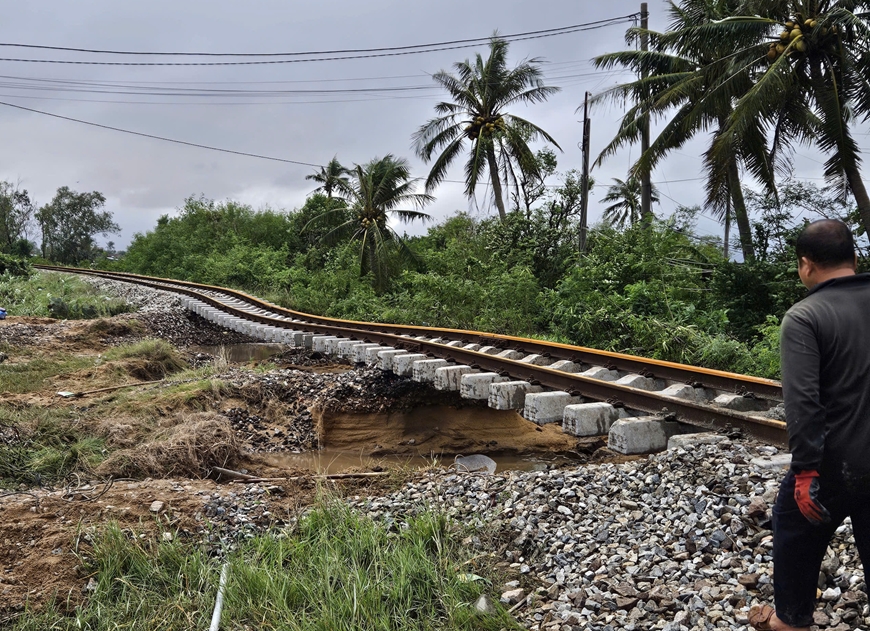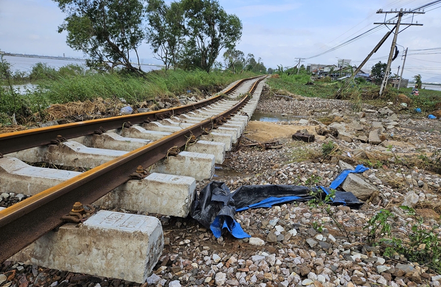 Một số đoạn đường sắt Bắc-Nam bị hư hỏng do thiên tai. |