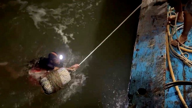 Cứu ngư dân Quảng Ngãi chìm thuyền thúng trôi dạt trên biển