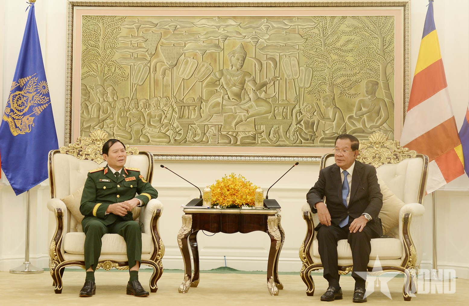 Đại tướng Nguyễn Tân Cương chào xã giao Chủ tịch Đảng Nhân dân Campuchia, Chủ tịch Thượng viện Campuchia Hun Sen