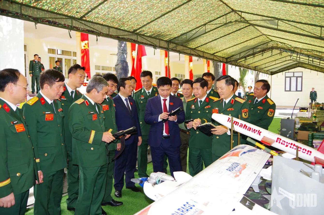 | Thiếu tướng Lương Văn Kiểm cùng các đại biểu tham quan sáng kiến mô hình học cụ. |
