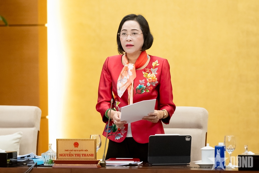 | Phó chủ tịch Quốc hội Nguyễn Thị Thanh điều hành phiên họp. Ảnh: PHẠM THẮNG |