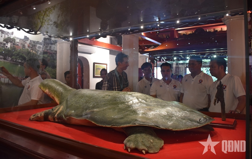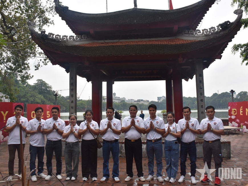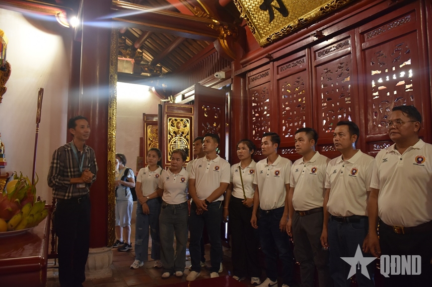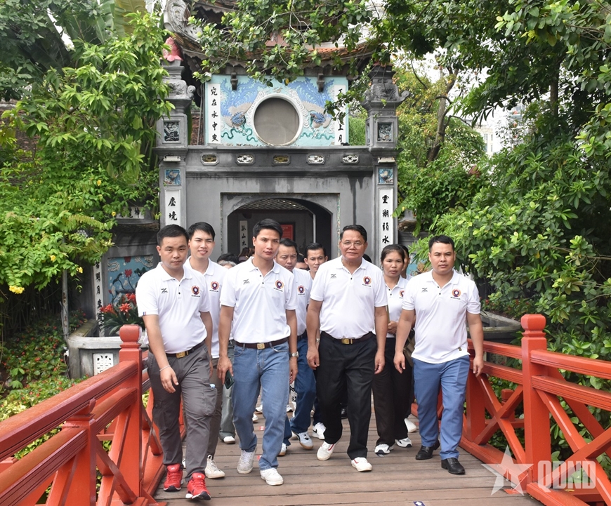 | Đoàn cán bộ Báo QĐND Lào thăm Đền Ngọc Sơn. |
