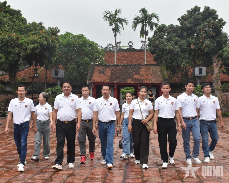 Đoàn cán bộ Báo QĐND Lào tham quan Văn Miếu - Quốc Tử Giám. |