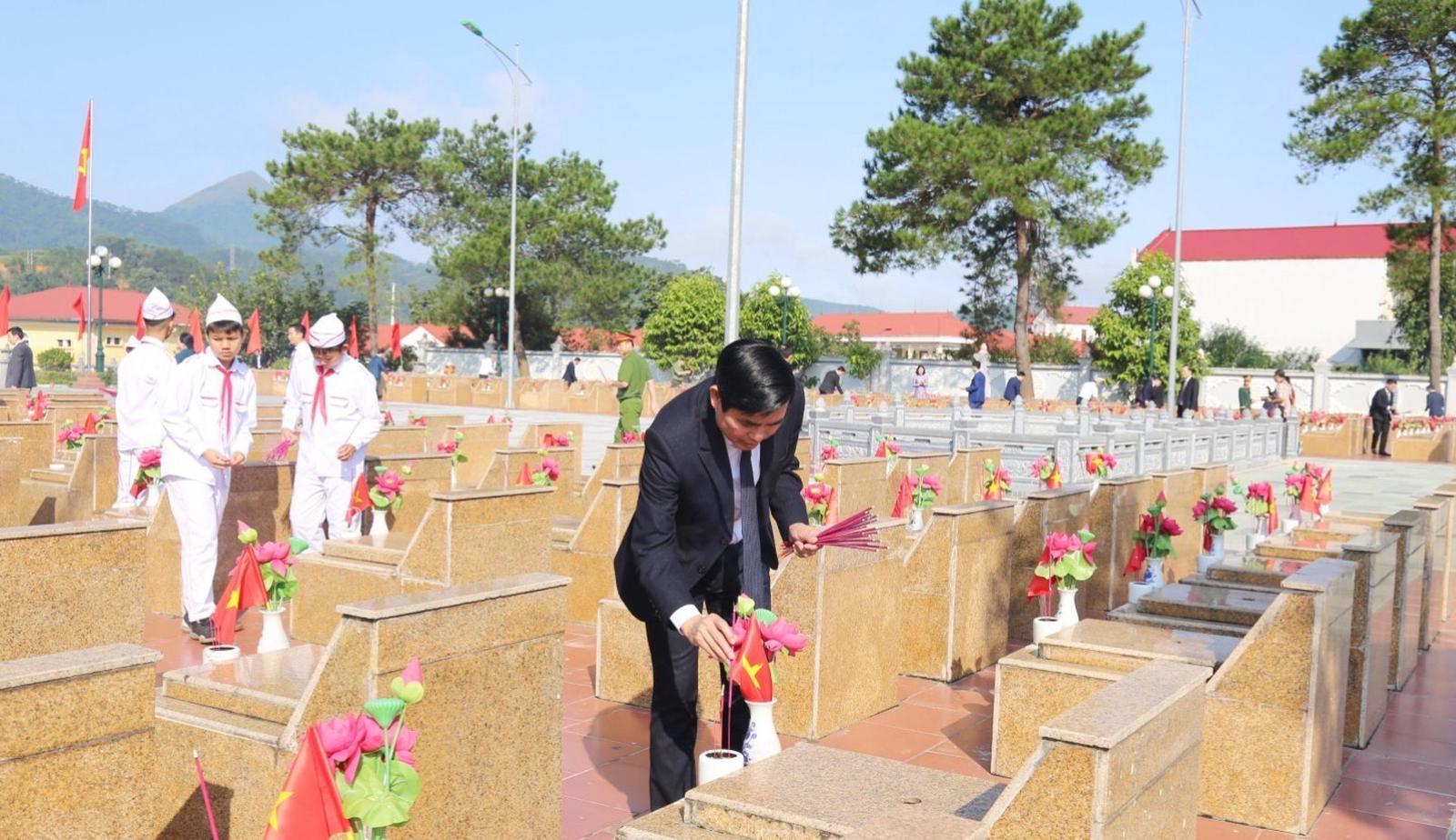 Bí thư Tỉnh ủy Hoàng Quốc Khánh thắp hương tưởng nhớ các anh hùng liệt sĩ tại Nghĩa trang liệt sĩ Lạng Sơn. Ảnh: Trí Dũng