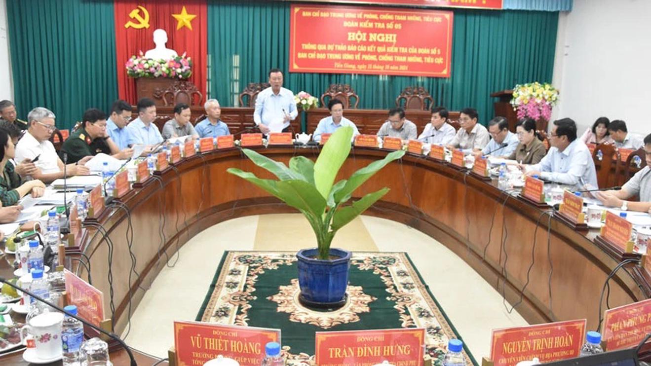 Chiều ngày 15/10, Đoàn Kiểm tra số 5 của Ban Chỉ đạo Trung ương về phòng, chống tham nhũng, tiêu cực công bố dự thảo báo cáo kết quả kiểm tra việc lãnh đạo, chỉ đạo, tổ chức thực hiện cơ chế phối hợp phát hiện, xử lý tham nhũng, tiêu cực qua hoạt động kiểm tra, thanh tra, kiểm toán, điều tra, truy tố, xét xử, thi hành án tại tỉnh Tiền Giang.