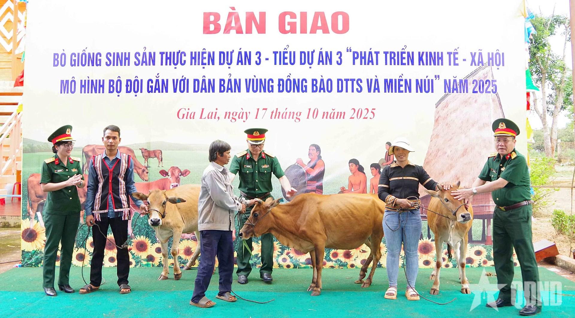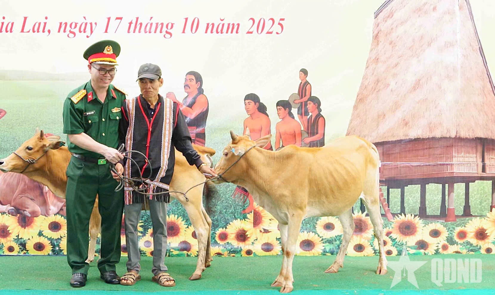 Sáng 17-10, Đoàn Kinh tế - Quốc phòng 74 (Binh đoàn 15) tổ chức trao bò giống tặng nhân dân hai xã Ia Chia, Ia Dơk (tỉnh Gia Lai).