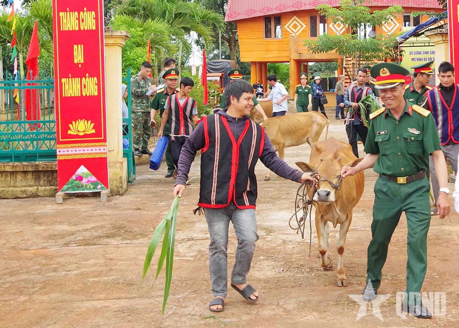 Đợt này, 25 gia đình hộ nghèo, cận nghèo, đồng bào dân tộc thiểu số được Đoàn Kinh tế - Quốc phòng 74 trao mỗi hộ một con bò giống trị giá 16,8 triệu đồng; hỗ trợ làm chuồng trại, hướng dẫn kỹ thuật chăm sóc, phòng bệnh, khai thác nguồn thức ăn với kinh phí hơn 467 triệu đồng từ nguồn ngân sách Nhà nước và 50 triệu nguồn vốn đối ứng.