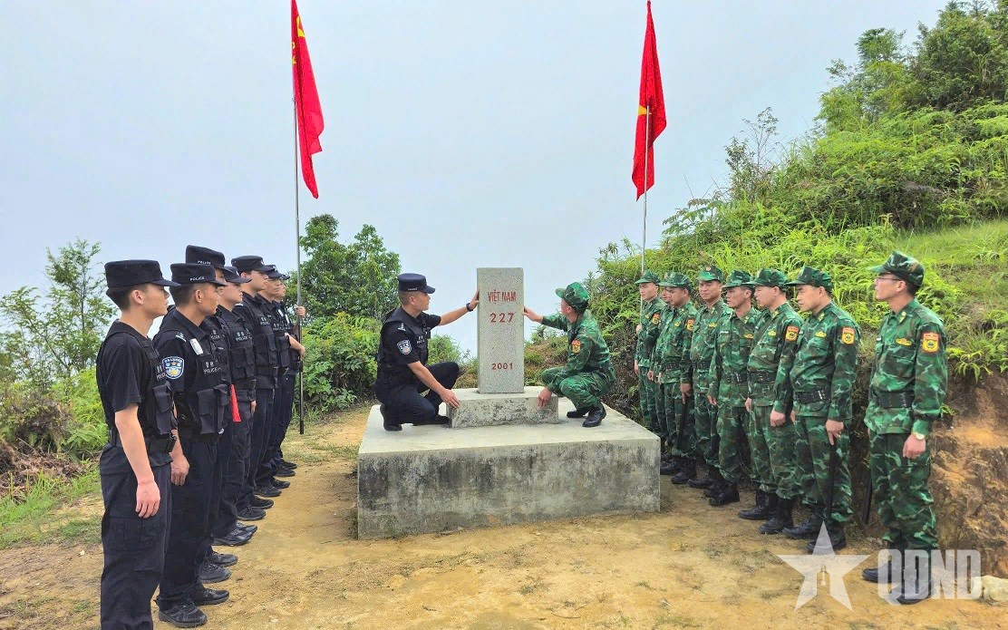 Đội hình tuần tra hai nước chụp ảnh lưu niệm tại cột mốc 227. |