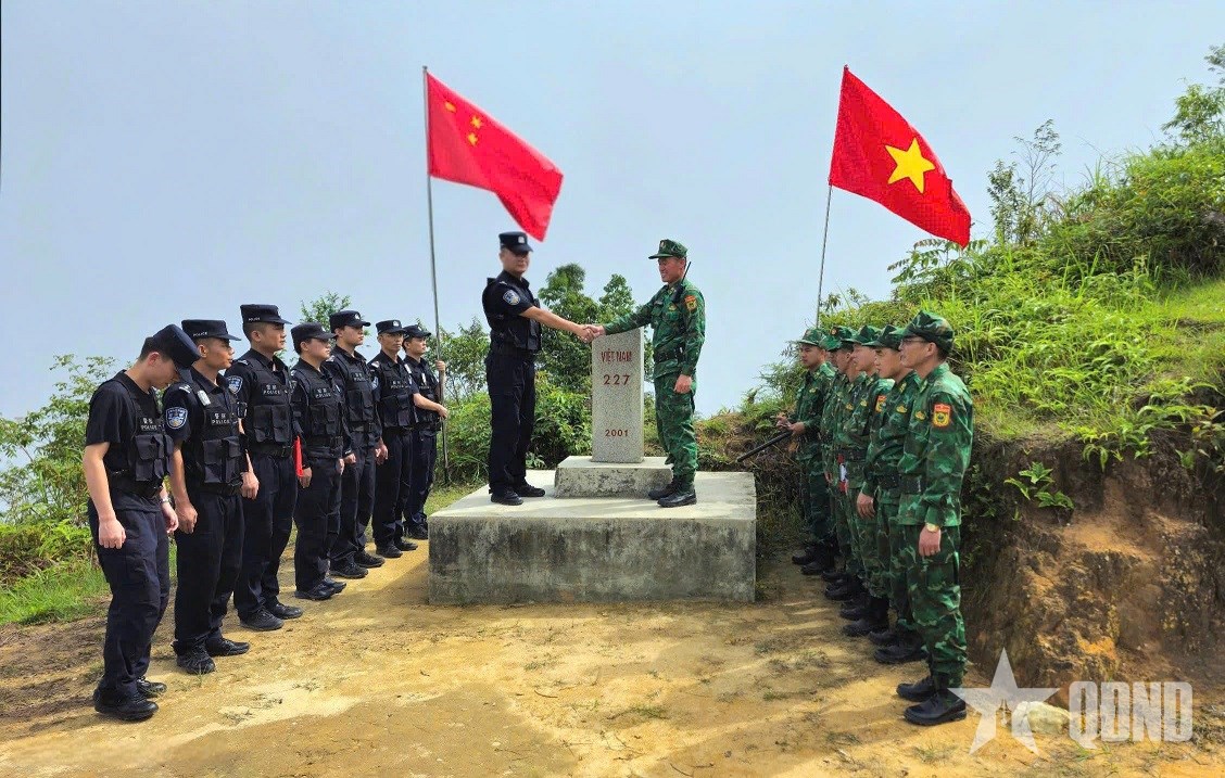 Đội hình tuần tra hai nước Việt Nam - Trung Quốc gặp gỡ trao đổi công việc trên biên giới. |