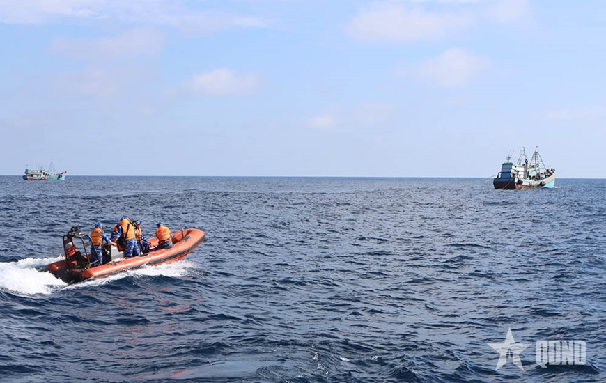 | Lực lượng Vùng Cảnh sát biển 3 tiếp cận tàu cá để kiểm tra. |