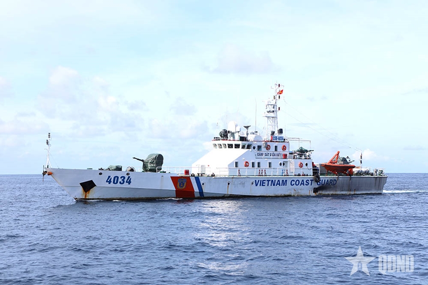 | Tàu Cảnh sát biển thực hiện hải trình kiểm tra tuyến biển giáp ranh. |