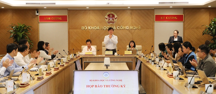 Thứ trưởng Bộ Khoa học và Công nghệ Bùi Hoàng Phương chủ trì họp báo. Ảnh: KHÁNH DUY |