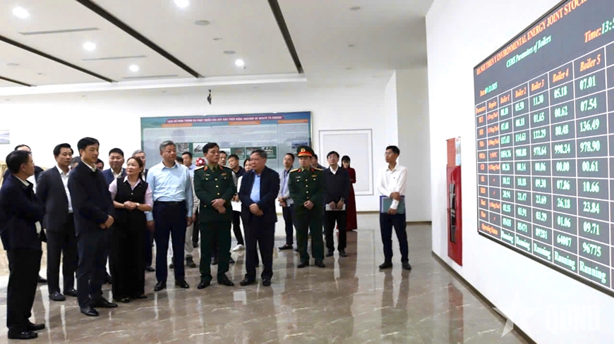 | Đồng chí Nguyễn Duy Ngọc, Bí thư Thành ủy Hà Nội và đoàn công tác tham quan bên trong Nhà máy Điện rác Sóc Sơn. |