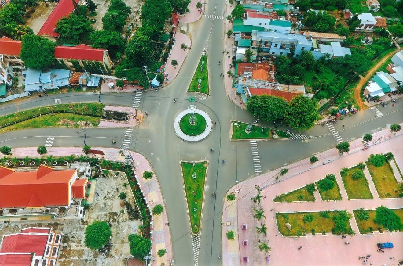 Trung tâm Thị trấn Krông Kmar nhìn từ trên cao. Ảnh: krongkmar.com