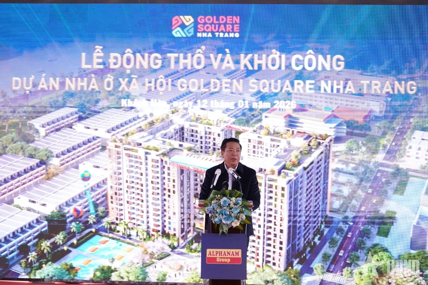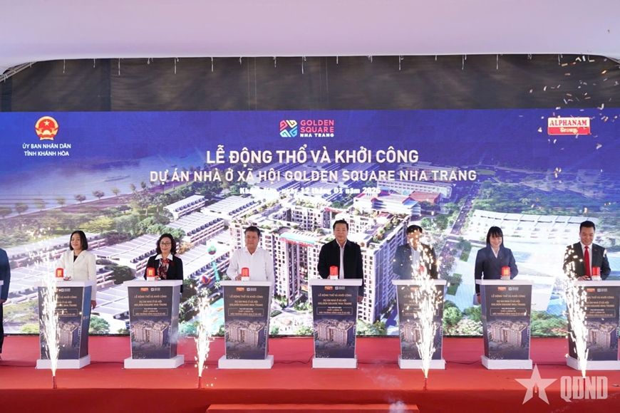 Sáng 12-1, tại Khu đô thị An Bình Tân, đường Võ Văn Kiệt, phường Nam Nha Trang, tỉnh Khánh Hòa, diễn ra lễ động thổ và khởi công Dự án Nhà ở xã hội CT-01 (Golden Square Nha Trang).