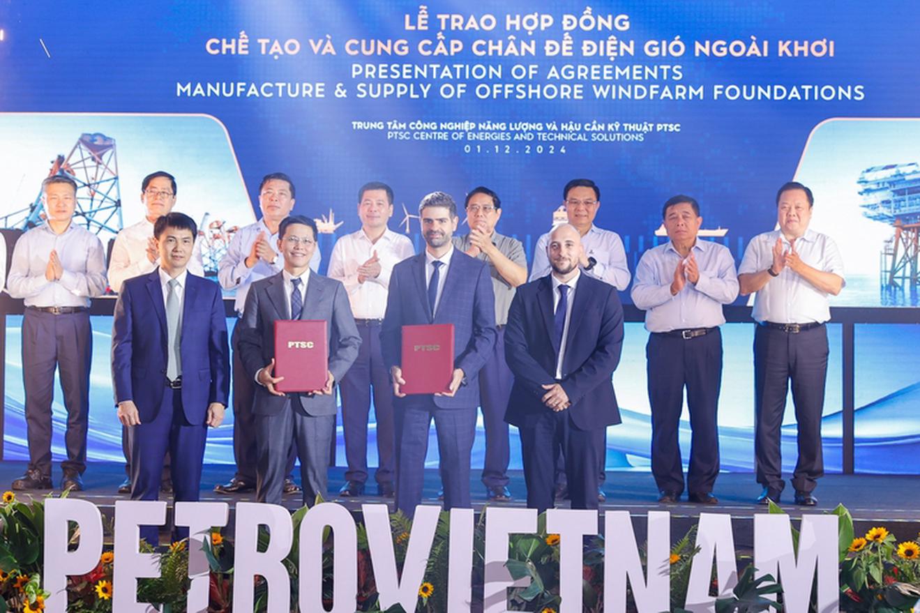 Cũng tại đây, dưới sự chứng kiến Thủ tướng Chính phủ Phạm Minh Chính, Công ty PTSC và các đối tác trao Hợp đồng FSO Lạc Đà Vàng và Hợp đồng chế tạo và cung cấp chân đế điện gió ngoài khơi.
