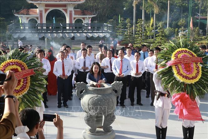Tại Nghĩa trang Liệt sĩ tỉnh Cà Mau, Phó chủ tịch nước Võ Thị Ánh Xuân cùng các thành viên trong Đoàn và lãnh đạo tỉnh đã đặt vòng hoa mang dòng chữ “Đời đời nhớ ơn các Anh hùng liệt sĩ”, dâng hương tại Đài tưởng niệm và thắp nhang lên từng phần mộ.