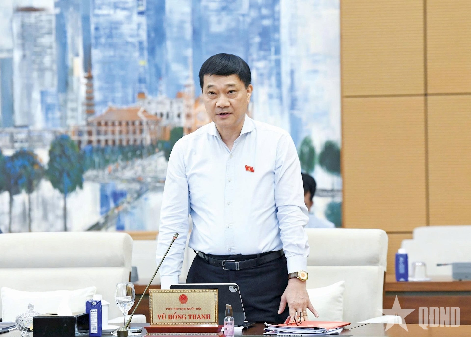 Nêu ý kiến thảo luận liên quan đến lộ trình chuẩn bị việc cấm xe máy chạy bằng xăng, dầu ở vành đai 1 ở Hà Nội, Phó chủ tịch Quốc hội Vũ Hồng Thanh đề nghị Chính phủ tăng cường công tác truyền thông.