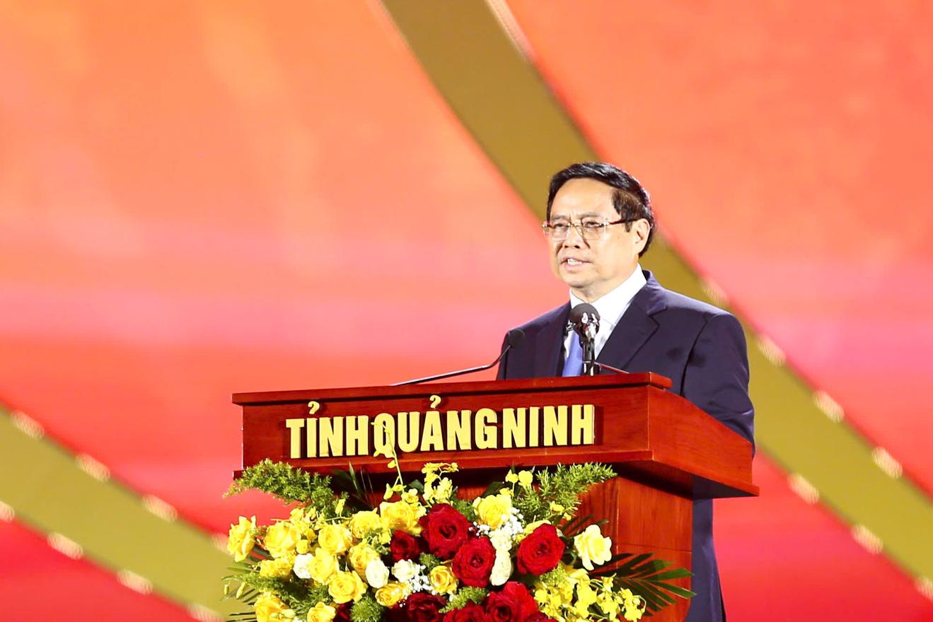 Thủ tướng Phạm Minh Chính phát biểu tại lễ công bố giá trị nổi bật toàn cầu quần thể di tích và danh thắng Yên Tử - Vĩnh Nghiêm - Côn Sơn, Kiếp Bạc. Ảnh: BTC