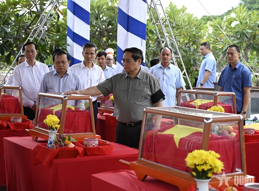 *Cũng trong sáng nay, Thủ tướng Phạm Minh Chính đã thăm và động viên các đội quy tập hài cốt liệt sĩ thuộc Quân khu 9.