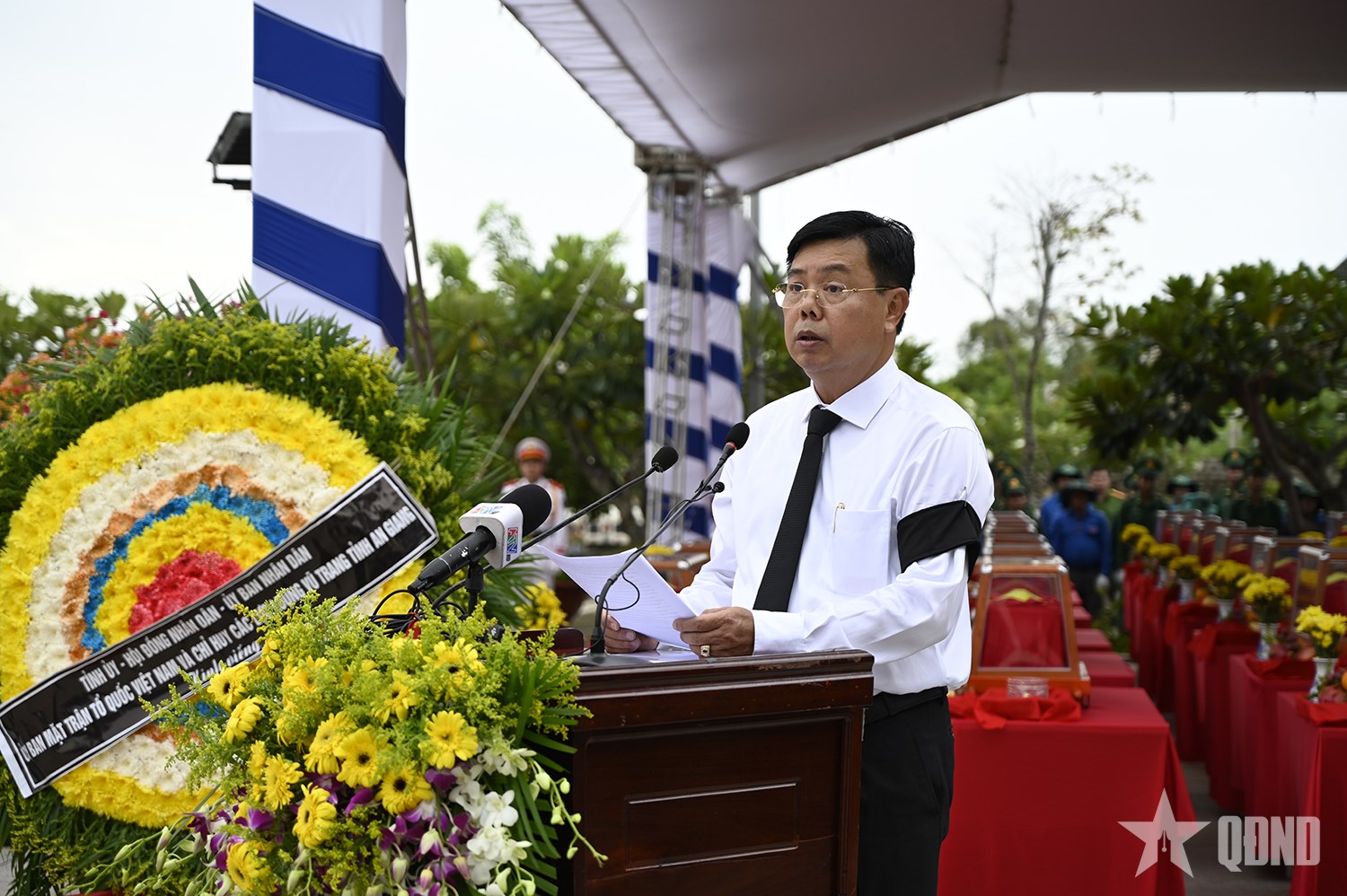 Đọc điếu văn tại buổi lễ, Bí thư Tỉnh ủy An Giang Nguyễn Tiến Hải bày tỏ, mỗi hài cốt liệt sĩ được quy tập là sự tri ân thiêng liêng. Từ năm 2001 đến nay, Đội K93 tỉnh An Giang đã quy tập được 2.141 hài cốt liệt sĩ quân tình nguyện và chuyên gia Việt Nam hy sinh tại Campuchia và trong nước. Riêng mùa khô 2024-2025, quy tập được 81 hài cốt liệt sĩ, trong đó 80 hài cốt được an táng tại quê nhà.