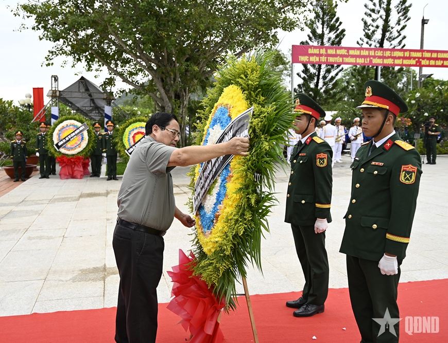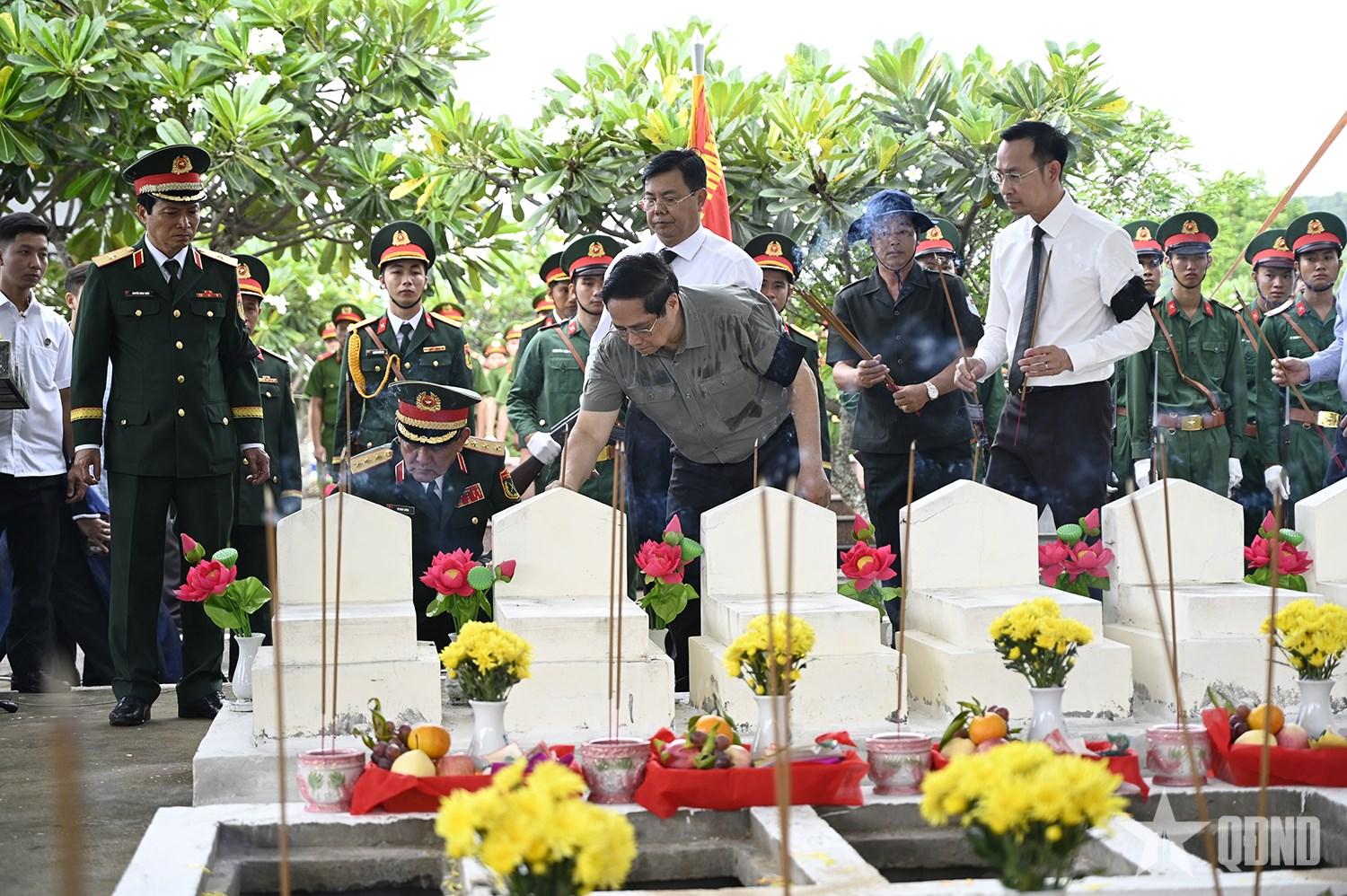 Thủ tướng Phạm Minh Chính và các đại biểu tưởng niệm tri ân các anh hùng liệt sĩ. |