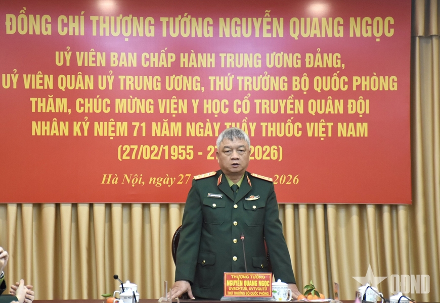 Sáng 27-2, tại Hà Nội, Thượng tướng Nguyễn Quang Ngọc, Ủy viên Trung ương Đảng, Thứ trưởng Bộ Quốc phòng đến chúc mừng Viện Y học cổ truyền Quân đội và Bệnh viện Trung ương Quân đội 108 nhân kỷ niệm 71 năm Ngày Thầy thuốc Việt Nam (27-2-1955 / 27-2-2026).