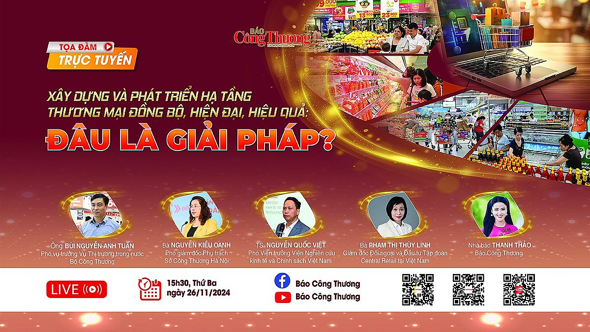 Chiều nay 26/11, Báo Công Thương tổ chức tọa đàm Xây dựng và phát triển hạ tầng thương mại đồng bộ, hiện đại, hiệu quả: Đâu là giải pháp? |