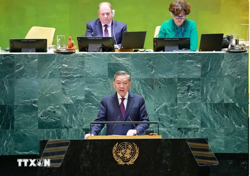 Tổng Bí thư, Chủ tịch nước Tô Lâm phát biểu tại Phiên thảo luận chung cấp cao Đại hội đồng Liên hợp quốc Khóa 79. (Ảnh: Lâm Khánh/TTXVN) |