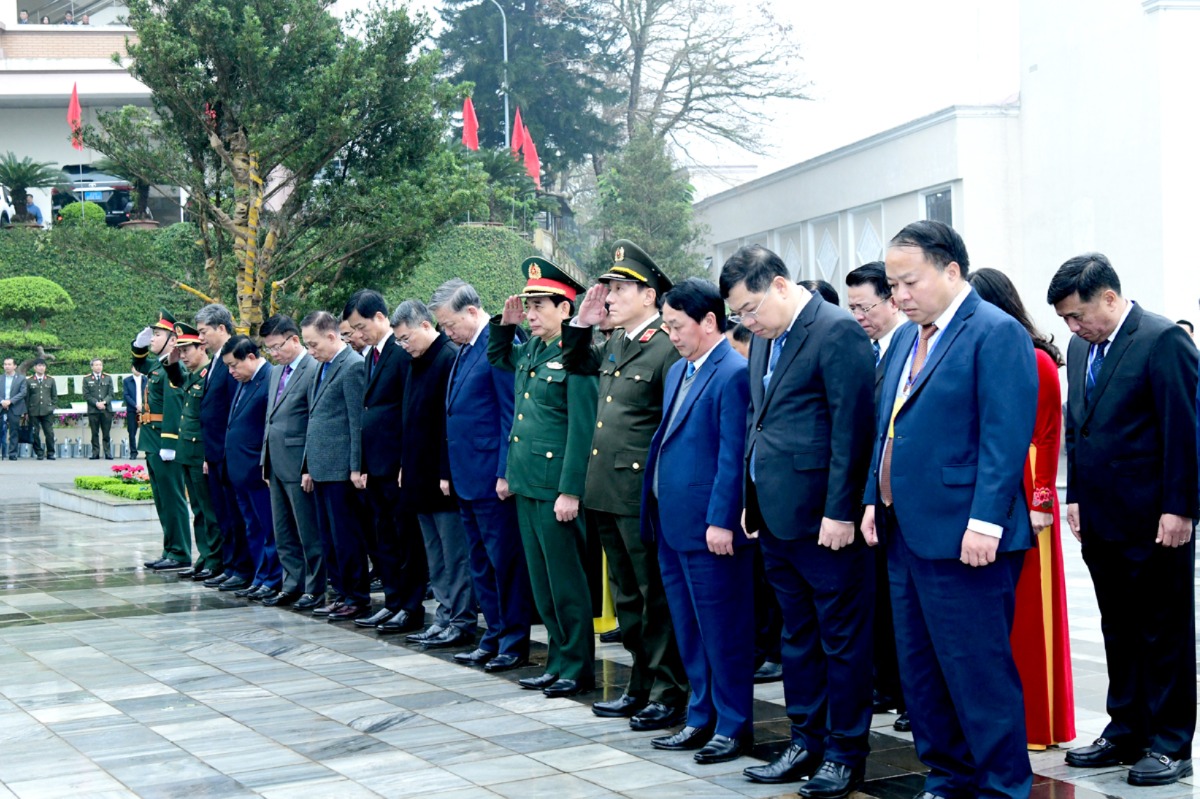 Tổng Bí thư Tô Lâm và các đại biểu tưởng nhớ công ơn to lớn của Chủ tịch Hồ Chí Minh. Ảnh: Báo Hà Giang