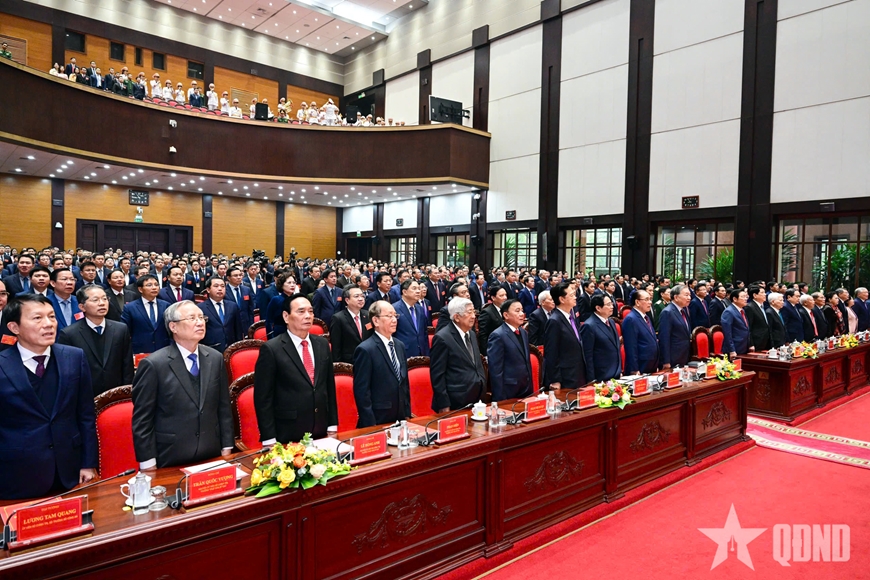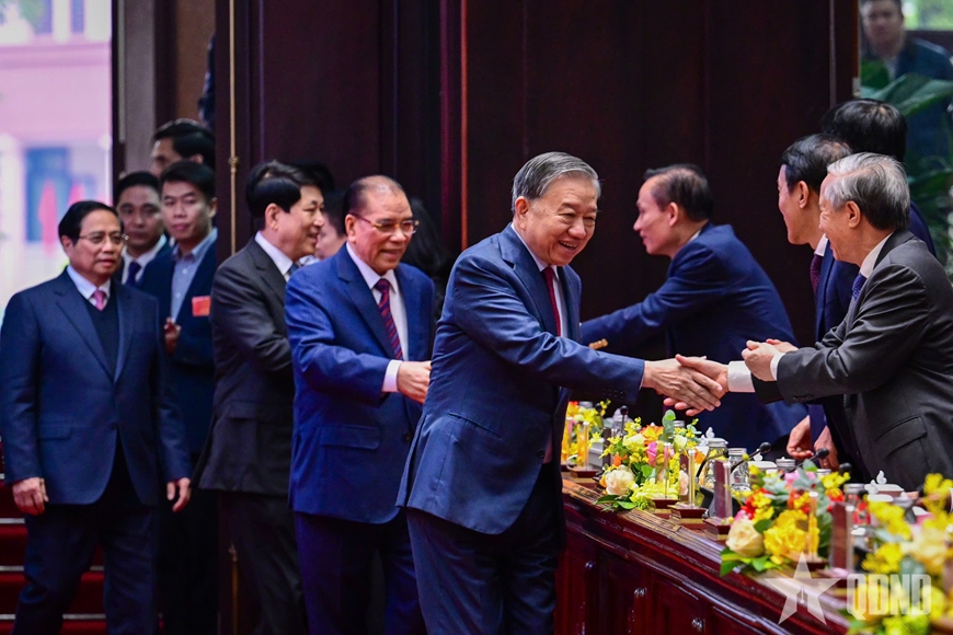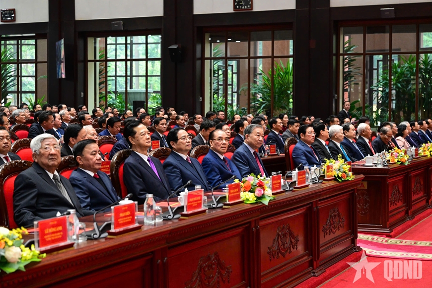 | Tổng Bí thư Tô Lâm và các đồng chí lãnh đạo, nguyên lãnh đạo Đảng, Nhà nước dự lễ kỷ niệm. |