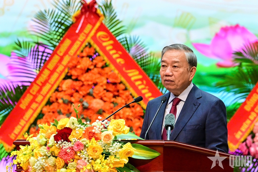 | Tổng Bí thư Tô Lâm phát biểu chỉ đạo tại lễ kỷ niệm. |
