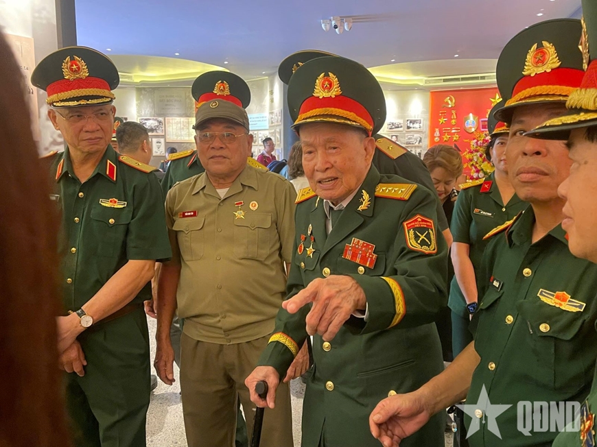 Đại tá, Anh hùng LLVT nhân dân Nguyễn Văn Tàu (bí danh Tư Cang) tham quan Nhà tưởng niệm. Ông nguyên là Cụm trưởng Cụm H63, nơi đồng chí Phạm Xuân Ẩn là một điệp viên chủ lực. |