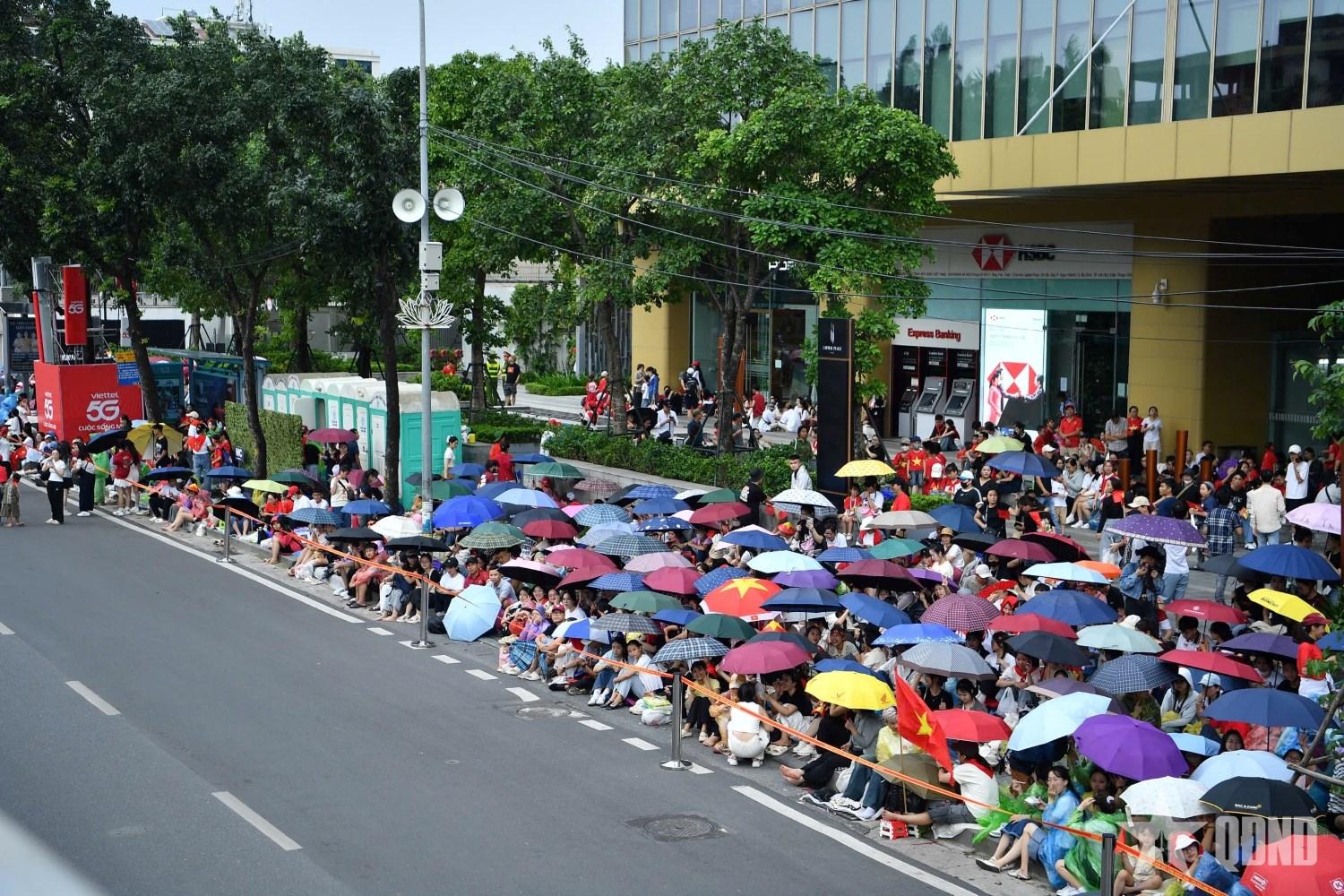 Lực lượng đứng gồm: Tiêu binh lễ đài và 29 khối đứng (18 khối lực lượng vũ trang đứng đối diện khán đài A; 11 khối quần chúng đứng hai bên các khối lực lượng vũ trang mới được bổ sung từ ngày 21-8).