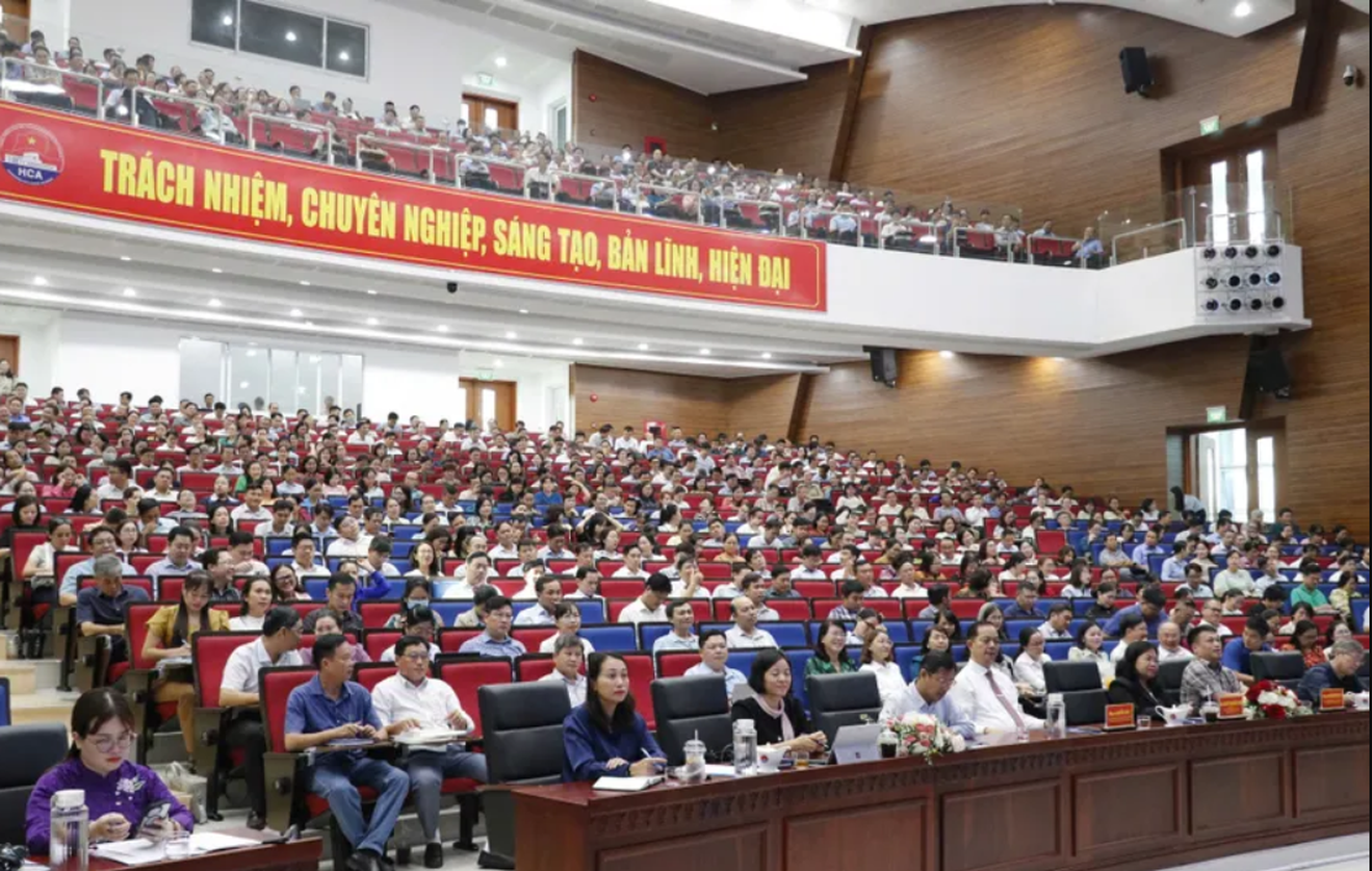 Điểm cầu trực tuyến tại Học viện Cán bộ TP HCM. Ảnh: PL