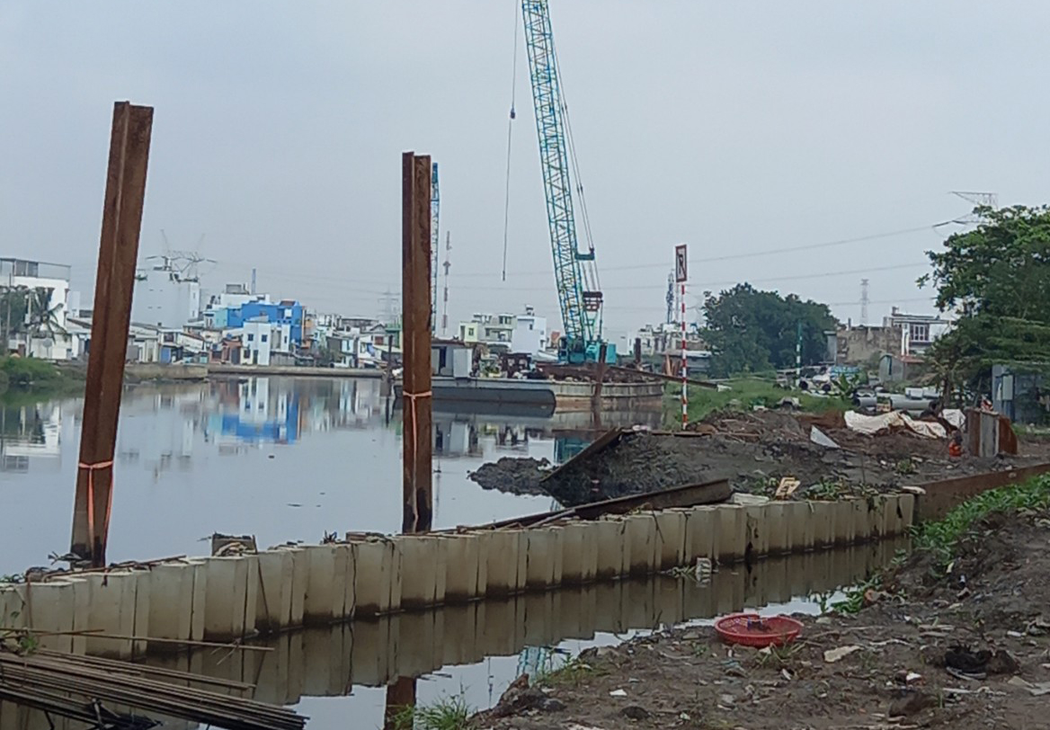 Dự án xây dựng hạ tầng và cải tạo môi trường kênh Tham Lương - Bến Cát - Rạch Nước Lên mới chỉ đạt tiến độ thi công khoảng 46%. Ảnh: Thu Huyền