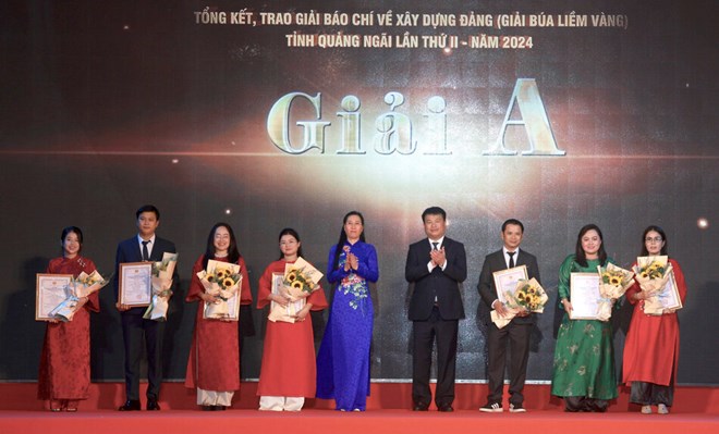 Dịp này, Tỉnh ủy Quảng Ngãi tặng hoa chúc mừng 2 nhóm tác giả có tác phẩm đoạt Giải Báo chí về xây dựng Đảng cấp trung ương; khen thưởng 2 tập thể tiêu biểu trong hoạt động thông tin tuyên truyền về công tác xây dựng Đảng và triển khai hưởng ứng Giải Búa liềm vàng tỉnh lần thứ II - năm 2024.