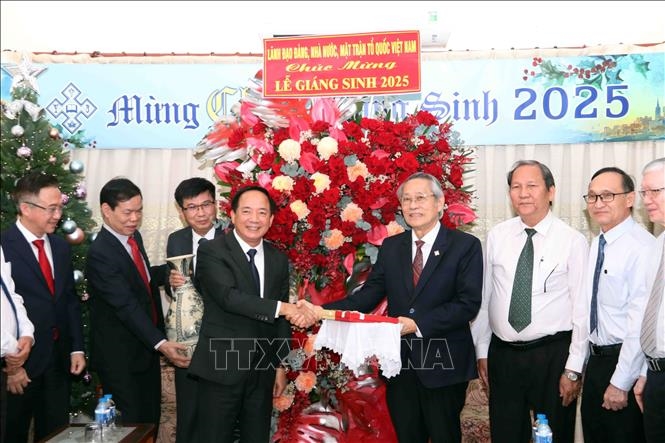 Tại Tòa Tổng Giám mục Tổng Giáo phận TP Hồ Chí Minh, Trưởng ban Tuyên giáo và Dân vận Trung ương Trịnh Văn Quyết gửi lời chúc mùa Giáng sinh an lành, hạnh phúc đến với Đức Tổng Giám mục Nguyễn Năng, các linh mục, tu sĩ và đồng bào Công giáo; cảm ơn sự đóng góp tích cực của đồng bào Công giáo đã đồng hành, ủng hộ các đường lối, chủ trương, chính sách của Đảng, Nhà nước trong phát triển kinh tế - xã hội, thực hiện công tác an sinh, hỗ trợ đồng bào bị hậu quả thiên tai, bão lũ trong năm 2025.