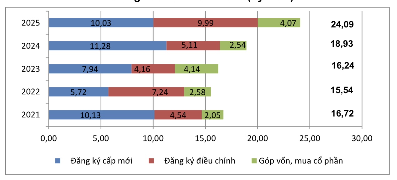 Vốn đăng ký góp vốn, mua cổ phần của nhà đầu tư nước ngoài có 1.982 lượt với tổng giá trị góp vốn 4,07 tỷ USD, tăng 61,0% so với cùng kỳ năm trước.