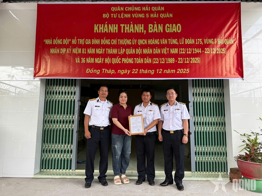Ngày 22-12, tại phường Mỹ Phước Tây, tỉnh Đồng Tháp, thừa ủy quyền của thủ trưởng Bộ tư lệnh Vùng 5 Hải quân, Lữ đoàn 175 tổ chức khánh thành, bàn giao nhà đồng đội tặng quân nhân đang công tác tại đơn vị nhân dịp kỷ niệm 81 năm Ngày thành lập Quân đội nhân dân Việt Nam (22-12-1944/22-12-2025) và 36 năm Ngày hội Quốc phòng toàn dân (22-12-1989/22-12-2025). Trung tá Vũ Văn Khương, Phó chính ủy Lữ đoàn chủ trì lễ bàn giao.