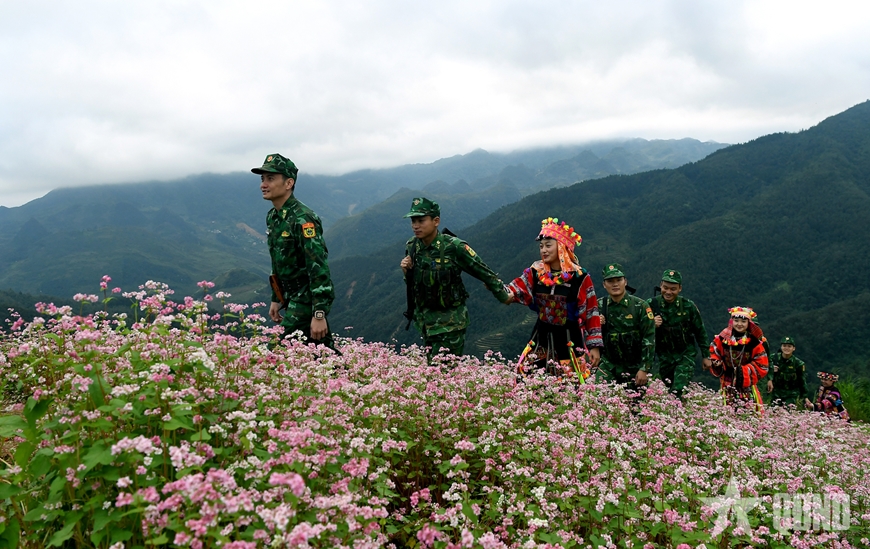 Cán bộ, chiến sĩ Đồn Biên phòng Lũng Cú (Bộ đội Biên phòng tỉnh Hà Giang) phối hợp với dân quân địa phương tổ chức tuần tra, canh gác bảo vệ vững chắc tuyến biên giới nơi địa đầu Tổ quốc.