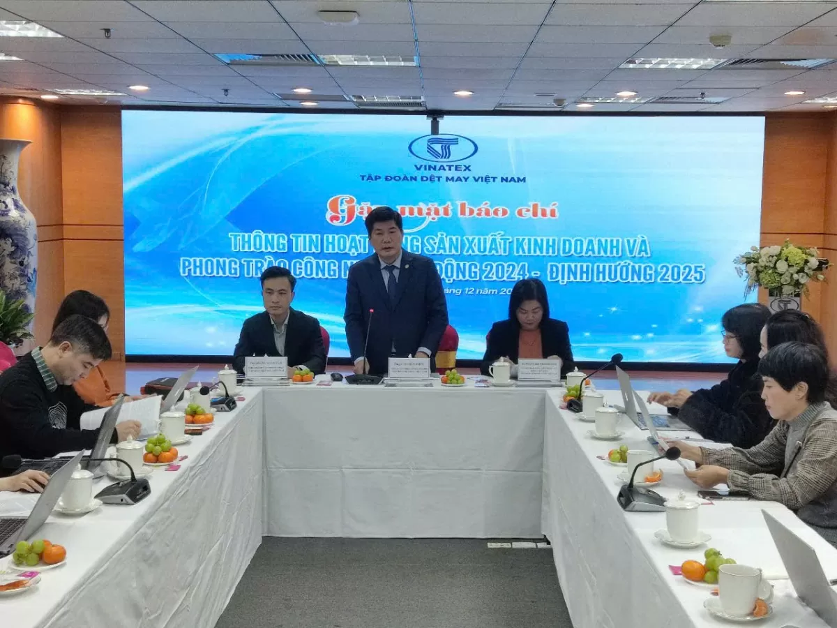 | Tập đoàn Dệt may Việt Nam thông tin về hoạt động sản xuất kinh doanh năm 2024 và định hướng năm 2025. Ảnh: Nguyễn Kiên |