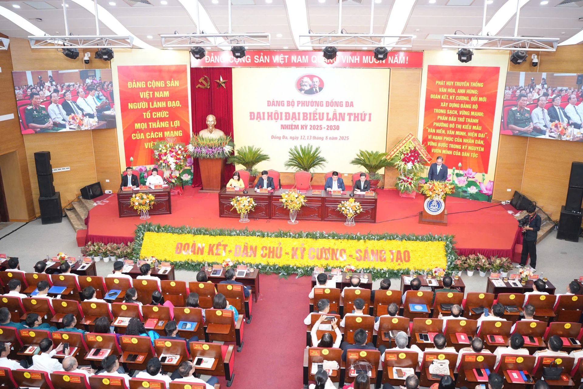 Phát biểu khai mạc Đại hội, Bí thư Đảng ủy, Chủ tịch HĐND phường Đống Đa Nguyễn Ngọc Việt, cho biết: Đại hội đại biểu Đảng bộ phường Đống Đa lần thứ I diễn ra trong bối cảnh đất nước đang ở thời điểm có tính lịch sử với cuộc cách mạng tinh gọn bộ máy. Đây là quyết sách mang tầm nhìn chiến lược được Đảng khởi xướng nhằm đưa đất nước vững vàng bước vào kỷ nguyên phát triển mới; trong thời điểm toàn Đảng, toàn dân, toàn quân ta hướng về kỷ niệm 80 năm Cách mạng Tháng Tám thành công, Quốc khánh 2-9 và chào mừng Đại hội Đảng các cấp, nhiệm kỳ 2025-2030.