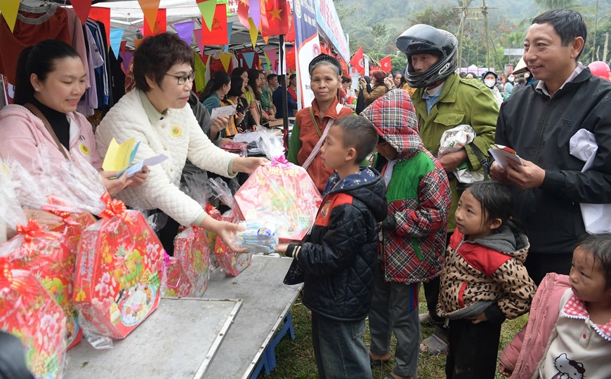 | NIềm vui của những em nhỏ vùng lũ Tam Thái khi được tặng quà nhân dịp xuân mới. |