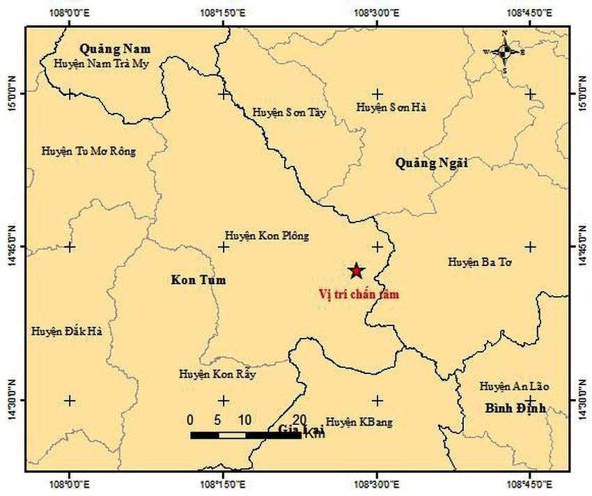 Trận động đất tại Kon Tum trưa 18/42022. Nguồn: Viện VLĐC