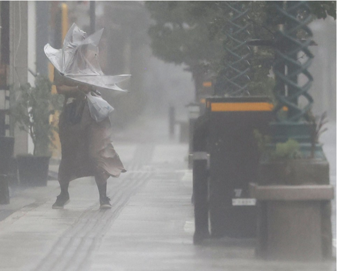 Mưa lớn và gió mạnh ở tỉnh Miyazaki ngày 18-9. Ảnh: Kyodo News