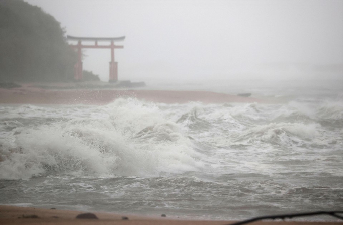 Sóng cao ở bờ biển tỉnh Miyazaki ngày 18-9. Ảnh: Kyodo News